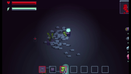 The farm defense aspect of this game shifts the focus from farming sim towards tower defense and reinforces the twin-stick shooter element. The player has to carefully balance how much time they spend exploring vs how much time they spend at their farm. They also need to be strategic when investing their resources. If they plan on spending most of their time at the farm, they might solely focus on builds that allow them to scale crop production. If they would rather spend more time exploring, they may need to invest more resources in defensive builds. My goal is to enable a wide variety of playstyles within the game.